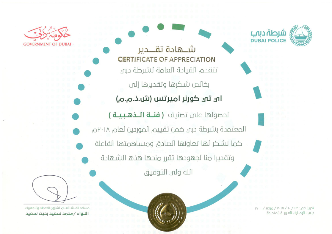 Classified as "Gold Class" within Dubai Police supplier evaluation, recognizing outstanding partnership.